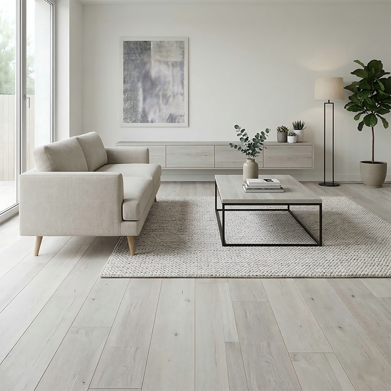 The surface UV coating is smooth and dense. It can be easily cleaned with a dry mop for daily care, and any crevices in the texture can be gently brushed with a soft brush. It does not tend to trap dirt or grime.