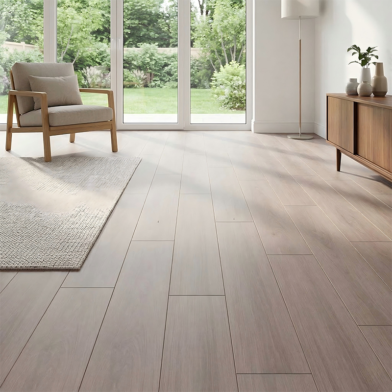The surface UV coating is smooth and dense. It can be easily cleaned with a dry mop for daily care, and any crevices in the texture can be gently brushed with a soft brush. It does not tend to trap dirt or grime.
