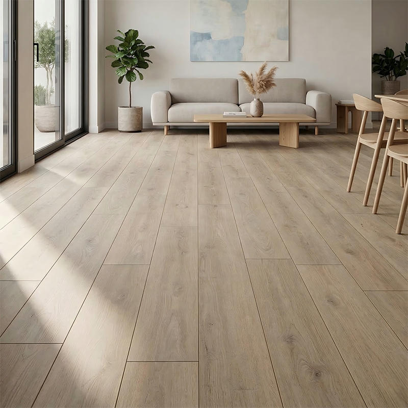 The surface UV coating is smooth and dense. It can be easily cleaned with a dry mop for daily care, and any crevices in the texture can be gently brushed with a soft brush. It does not tend to trap dirt or grime.