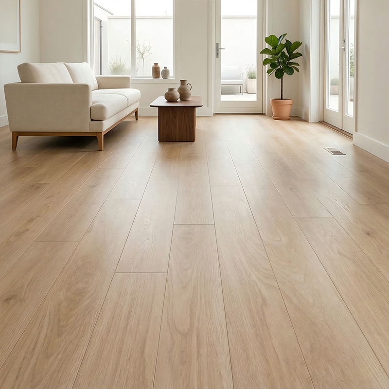 The surface UV coating is smooth and dense. It can be easily cleaned with a dry mop for daily care, and any crevices in the texture can be gently brushed with a soft brush. It does not tend to trap dirt or grime.