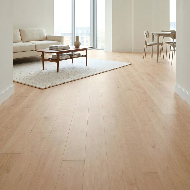 The surface UV coating is smooth and dense. It can be easily cleaned with a dry mop for daily care, and any crevices in the texture can be gently brushed with a soft brush. It does not tend to trap dirt or grime.