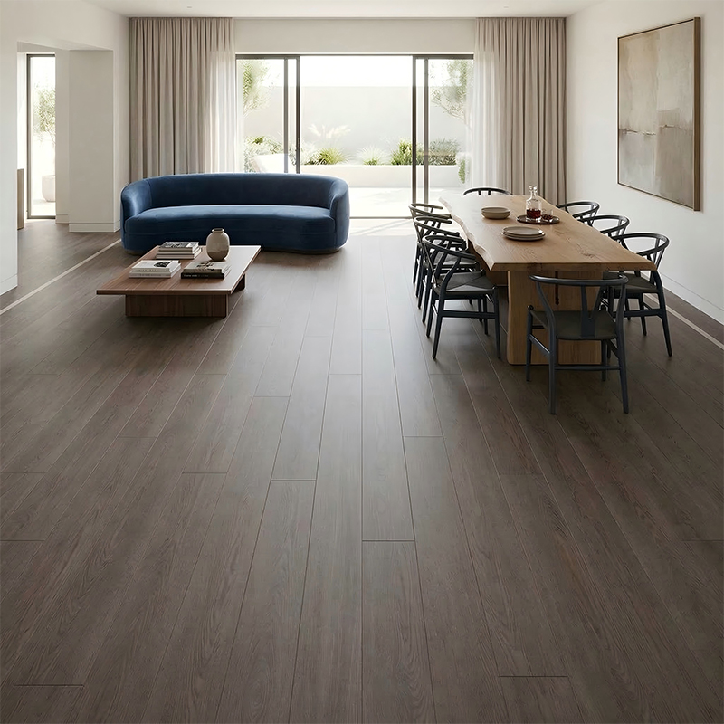 The surface UV coating is smooth and dense. It can be easily cleaned with a dry mop for daily care, and any crevices in the texture can be gently brushed with a soft brush. It does not tend to trap dirt or grime.