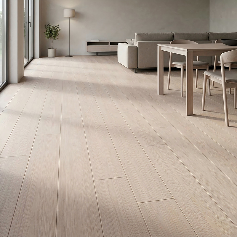 The surface UV coating is smooth and dense. It can be easily cleaned with a dry mop for daily care, and any crevices in the texture can be gently brushed with a soft brush. It does not tend to trap dirt or grime.