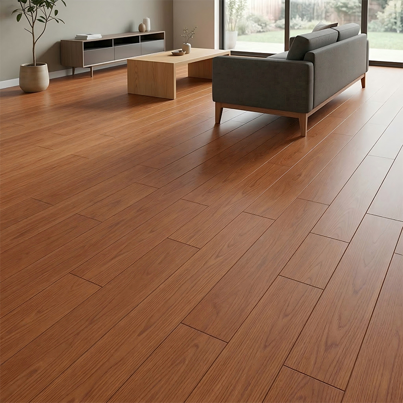 The surface UV coating is smooth and dense. It can be easily cleaned with a dry mop for daily care, and any crevices in the texture can be gently brushed with a soft brush. It does not tend to trap dirt or grime.