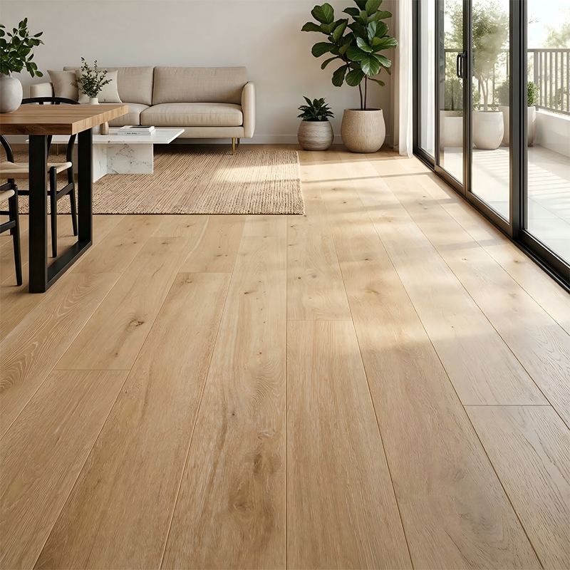 The surface UV coating is smooth and dense. It can be easily cleaned with a dry mop for daily care, and any crevices in the texture can be gently brushed with a soft brush. It does not tend to trap dirt or grime.