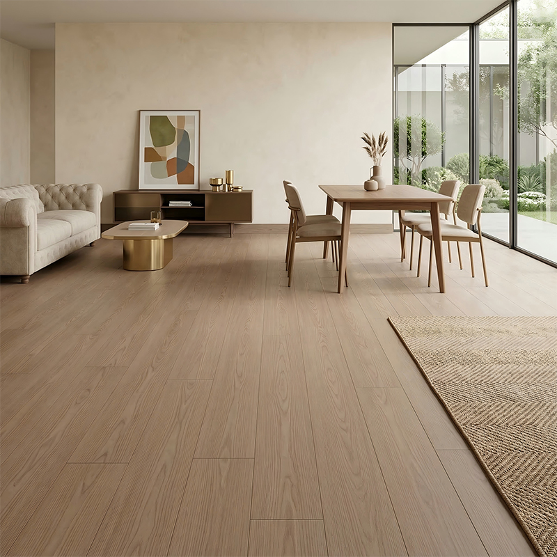 The surface UV coating is smooth and dense. It can be easily cleaned with a dry mop for daily care, and any crevices in the texture can be gently brushed with a soft brush. It does not tend to trap dirt or grime.