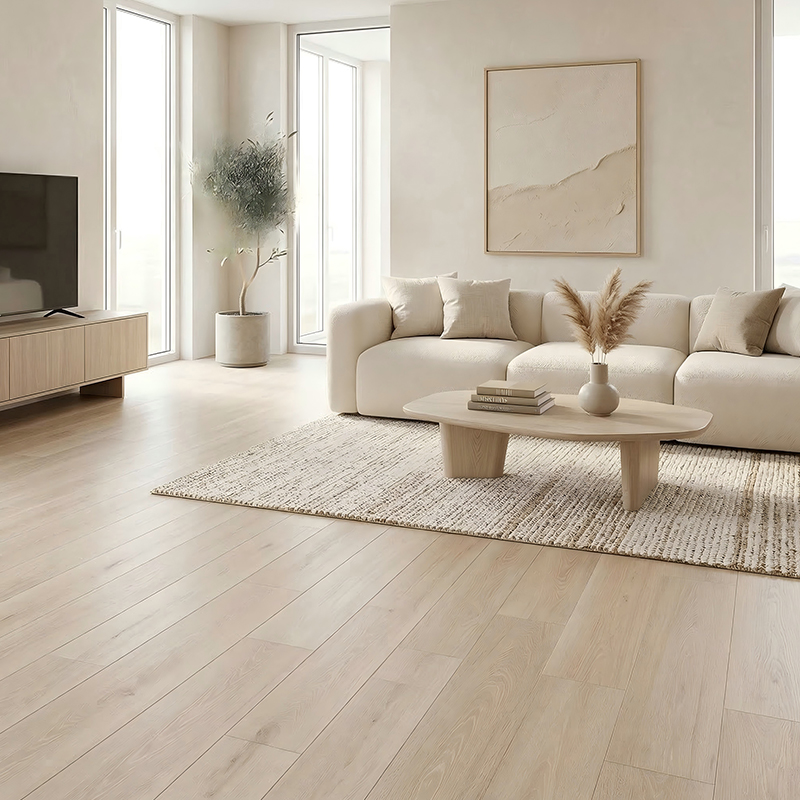 The surface UV coating is smooth and dense. It can be easily cleaned with a dry mop for daily care, and any crevices in the texture can be gently brushed with a soft brush. It does not tend to trap dirt or grime.