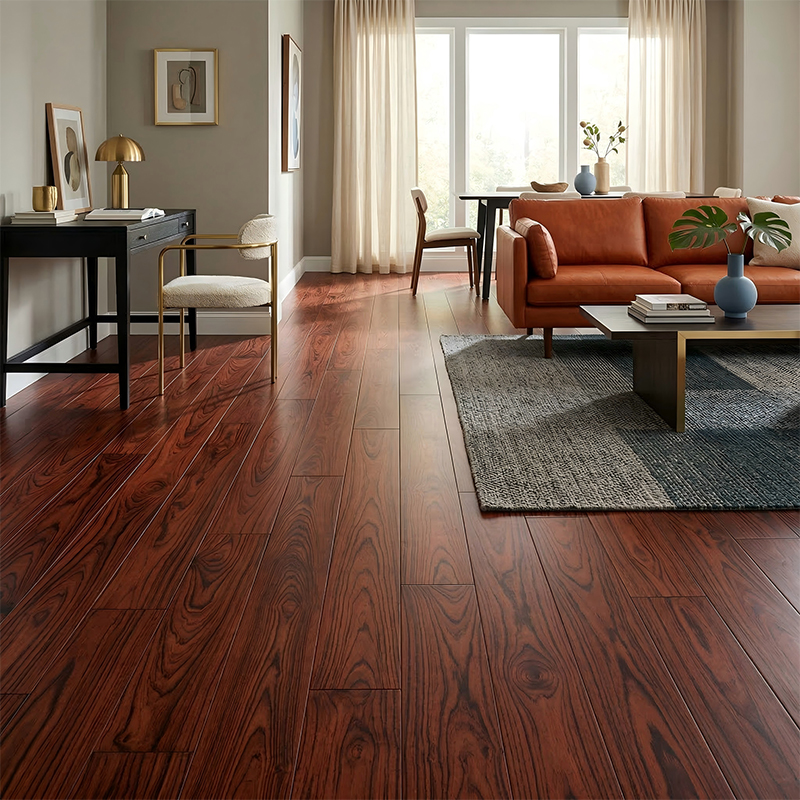 The surface UV coating is smooth and dense. It can be easily cleaned with a dry mop for daily care, and any crevices in the texture can be gently brushed with a soft brush. It does not tend to trap dirt or grime.