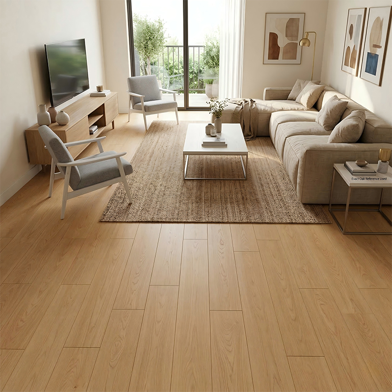 The surface UV coating is smooth and dense. It can be easily cleaned with a dry mop for daily care, and any crevices in the texture can be gently brushed with a soft brush. It does not tend to trap dirt or grime.
