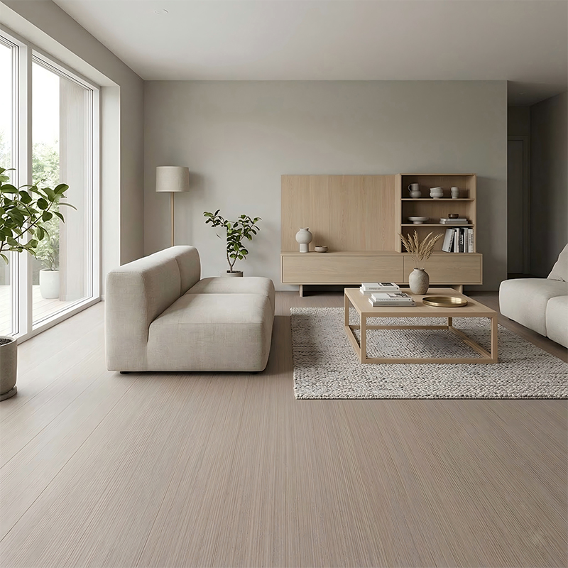 The surface UV coating is smooth and dense. It can be easily cleaned with a dry mop for daily care, and any crevices in the texture can be gently brushed with a soft brush. It does not tend to trap dirt or grime.