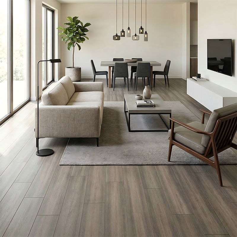The surface UV coating is smooth and dense. It can be easily cleaned with a dry mop for daily care, and any crevices in the texture can be gently brushed with a soft brush. It does not tend to trap dirt or grime.